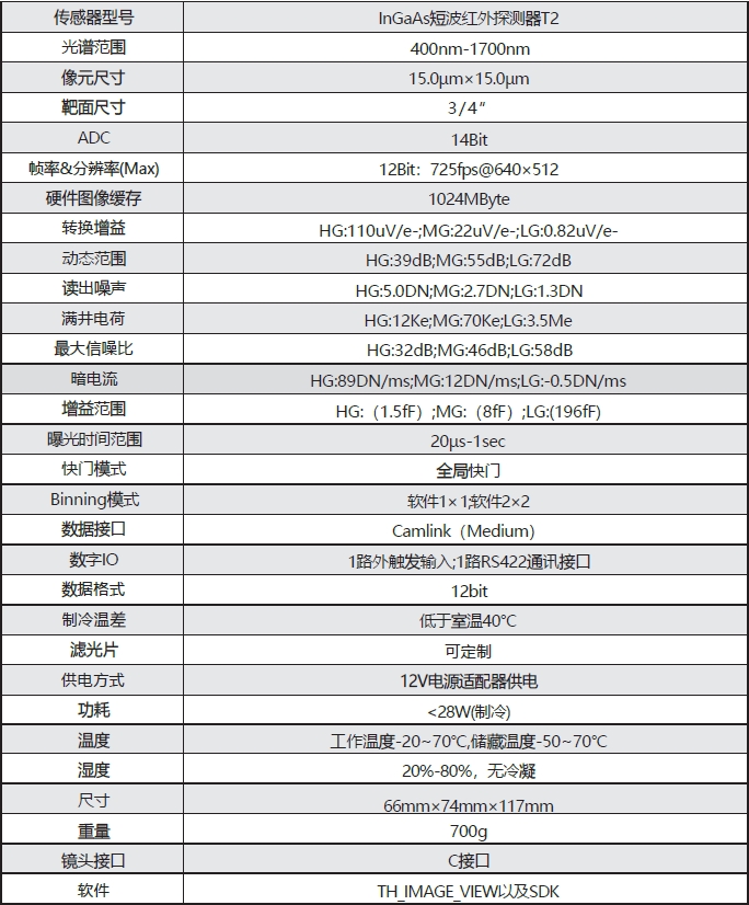 - 33万像素InGaAs,短波红外;